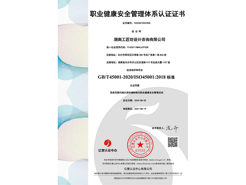 职业健康安全管理体系认证证书