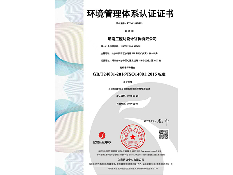 环境管理体系认证证书
